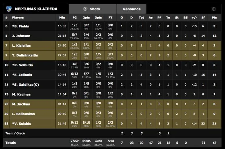 La segunda parte comenzaba igual que el primer cuarto, con una salida en tromba de los aurinegros, parcial de 0-7 y temprana entrada en bonus de los lituanos, con casi 7 minutos de juego por disputarse. Ponitka tomaba las riendas de la ofensiva para poner a su equipo con hasta 19 puntos de renta, pero gracias a los lanzamientos exteriores de Johnson, los lituanos recortaban 10 puntos, hasta el 52-61. Beirán ponía otra vez de vuelta esa ventaja psicológica por encima de la decena con el 52-63 y cerraba el tercer cuarto.