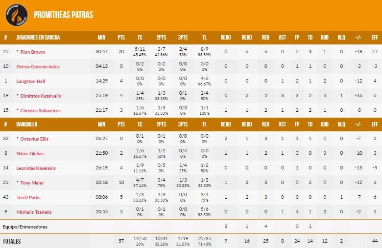 Promitheas Patras fue un rival muy flojo hoy. Sin desmerecer el gran trabajo defensivo de Iberostar Tenerife, los griegos demostraron ser un equipo muy justo de calidad en el partido de hoy, en el que solo se puede destacar a Rion Brown y sus 20 puntos. Hoy se demostró que lo del partido de ida fue un mal día de Iberostar Tenerife y que la posición en la clasificación en la fase de grupos mostraba la diferencia real, con los canarios líderes del suyo y los griegos clasificados cuartos en un triple empate. En ningún cuarto consiguieron alcanzar la veintena en puntos, siendo especialmente sangrante el segundo con solo nueve anotados y su porcentaje en tiros de campo fue del 28% con un 14 de 50.