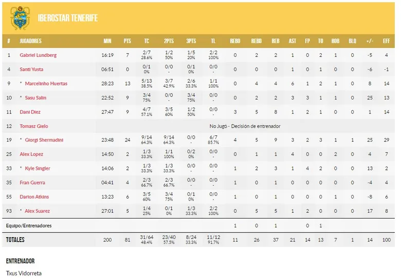 Pero claro, desde el momento en el que se pisa la cancha, no hay amor que valga ni recuerdos que lo resistan y a jugar se ponían los canarios desde el principio de los tiempos. Sobre todo el más alto de ellos, un glorioso Shermadini que ha comenzado la temporada como un auténtico cohete. Al son de los movimientos de la más vieja escuela, el amarillo que recordaba viejos tiempos en el equipaje local lucía hoy aún más hermoso con los ganchos interminables del center georgiano. Casi tanto como el color del balón con el que se juega este año la BCL y que recuerda a mucho de antaño. De aquella manera y comenzando a recuperar los engranajes defensivos que caracterizan a los equipos de Vidorreta se distanciaban desde temprano (19:30 en Canarias) los laguneros. Sin embargo no venían desde tan lejos a demostrar afecto los visitantes y empataban con Willis haciendo canastas de alto porcentaje. Hasta aquí. Parcial de 7-0 y primeras ventajas significativas para dejar a Gio ya con 12 puntos y el primer cuarto en 24-14.