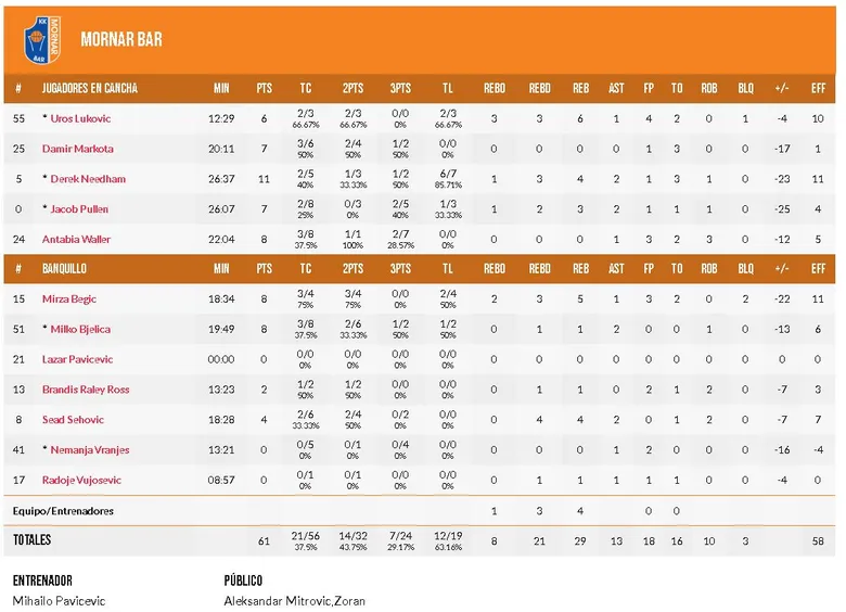 Los cheques no arman escuadras: a todos nos suenan muchos de sus nombres, nos recuerdan a buenas épocas pasadas. La ristra de viejos ilustres de Mornar rememora el record de triples de Jakob Pullen en el Pisuerga, la clase de Bjelica por tierras vascas, los buenos años de Begic por media España. Acompañados de la muñeca del siempre proyecto Markota y una colección de escoltas y aleros estadounidenses tan inexpresivos como Steven Seagal, no parece tener problemas para llegar a fin de mes el presidente de esta curiosa pandilla. Entre la entrada de años y el peor de los espíritus, malvive este equipo tanto aquí como en la Liga Adriática. Y es que esa combinación de viejas estrellas y poca alma hace que no siempre sirvan los cheques para armar proyectos que valgan.