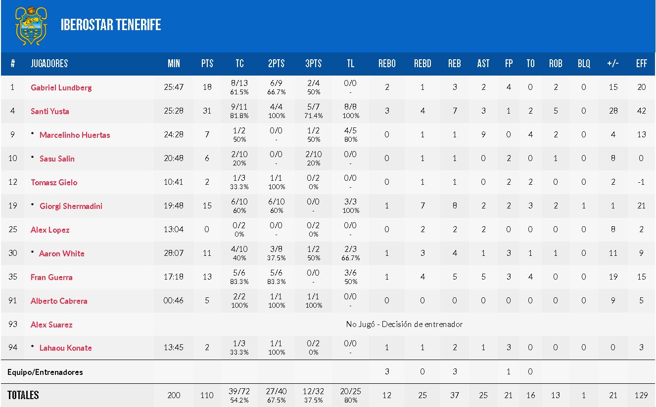 Yusta desatado: 31 puntos para 42 créditos de valoración. Ahí es nada para el de Torrejón. Una ofrenda al baloncesto de ataque ante las benevolencias venidas desde el Río Grande. Sobre todo en una segunda parte para enmarcar, en la que hizo puntos de todos los colores y sabores. Delante de tanto aspirante a jugar en la NBA, Santi demostró que, como su equipo, es otro que no para de andar. Uno que con sus apenas 22 años, todo lo tiene para triunfar, para disfrutar en Tenerife, para volver a aquel equipo del que salió, ¿para la Selección? Lo disfrutan ahora por el subtrópico, sobre todo en los días en los que sale su mejor versión, la de un Santi Yusta desatado.