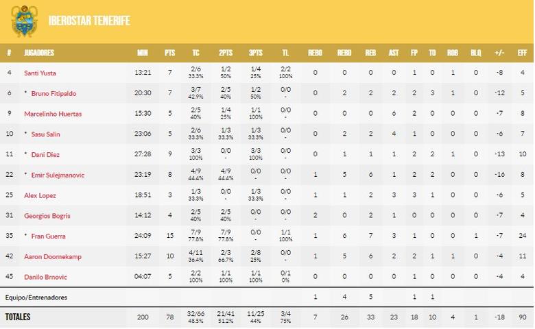 Fran Guerra sigue aprovechando cada oportunidad que tiene. El pívot canario ya hace tiempo que está para algo más que lucirse en partidos como este y demuestra cada vez que salta a la cancha lo acertado de su fichaje. Pero, a pesar de que ya haya superado este estatus, no iba a desaprovechar una buena ocasión para mostrar su calidad. Su estadística fue de 15 puntos, con 7 de 9 en tiros de campo, 7 rebotes, 3 asistencias y 24 de valoración, siendo el mejor de su equipo con diferencia.