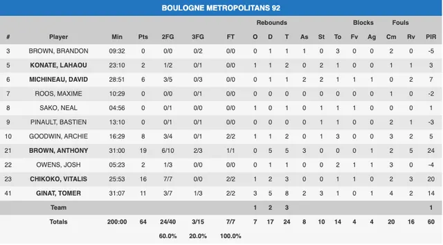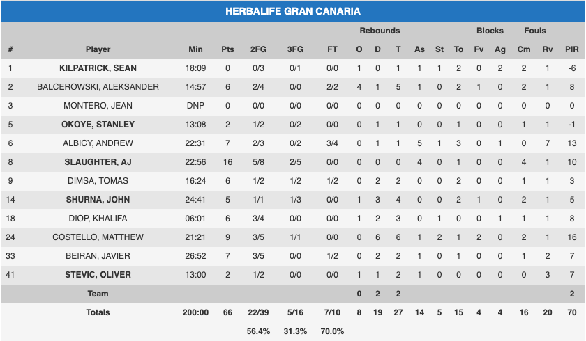 Horrible puesta en escena del Herbalife, que cometió errores de todo tipo y que sobrevivió gracias a su defensa y a los brillantes seis minutos de Diop, que cambió la cara a su equipo y a las acciones jugadas de uno contra uno de Slaughter. Los jugadores visitantes se centraron en defender de forma muy activa la zona exterior del Herbalife, que en la primera parte solo anotó dos triples (los dos de Slaughter en acciones individuales). Sin triples, Chikoko y Ginat marcaron las diferencias desde dentro y Anthony Brown desde la denostada media distancia (también anotó el único triple). Lo que no pudieron frenar ninguno de los dos equipos fueron las pérdidas, muchas de ellas groseras, no forzadas, aunque las defensas estaban mucho más acertadas que los ataques. Diecisiete pérdidas entre los dos equipos (10 del Granca y 7 del Metropolitans) en los primeros veinte minutos de juego son la evidencia de la intensidad defensiva, pero también de los nervios y los fallos de los jugadores.