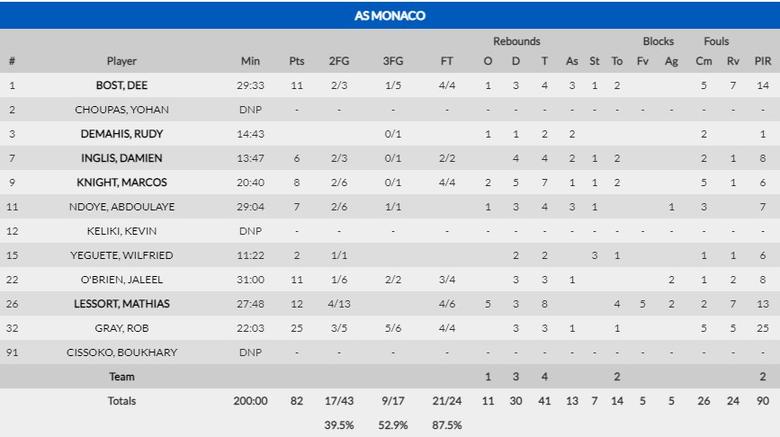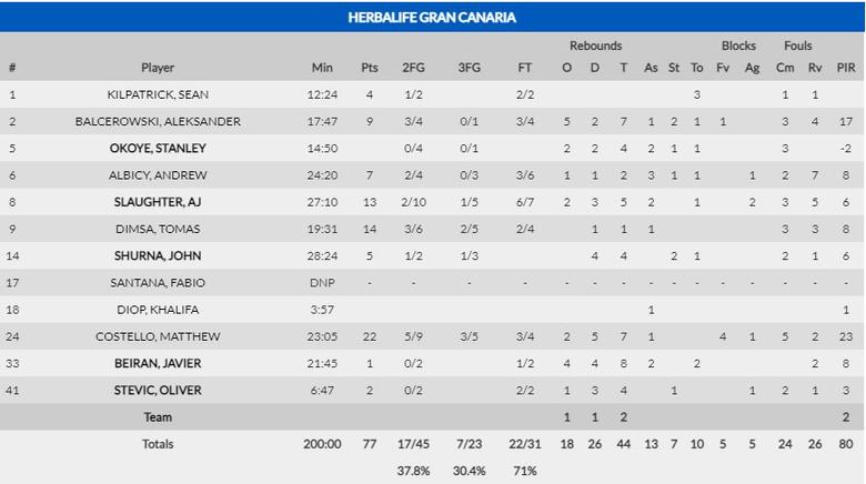 Mónaco superó el mal momento y con Rob Gray como líder anotador, encontraron varios jugadores que aportaron tanto en defensa como en el apartado ofensivo. Sobre todo Dee Bost y Knight fueron muy importantes con sus puntos cuando el Granca volvia a tener opciones, mientras el nivel defensivo del equipo fue muy alto durante prácticamente todo el choque. Con Slaughter bien defendido y forzando mucho en sus acciones de uno contra uno, el Granca no encontró, como venía siendo habitual en los últimos partidos, otros compañeros que tomaran la responsabilidad y minimizaran el impacto negativo de la poco habitual mala actuación del escolta con pasaporte polaco. Costello y Balcerowski fueron los mejores, pero el equipo echó de menos a más referentes ofensivos.