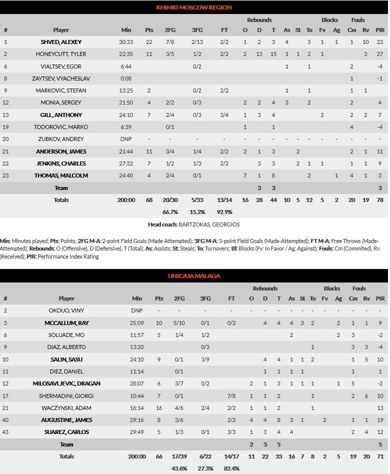 Dolorosa derrota de Unicaja en su visita al Khimki. Un partido que los malagueños dominaron siempre el marcador y que se les escapó con una canasta en el último instante de Anthony Gill que culminaba una remontada postrera del Khimki.