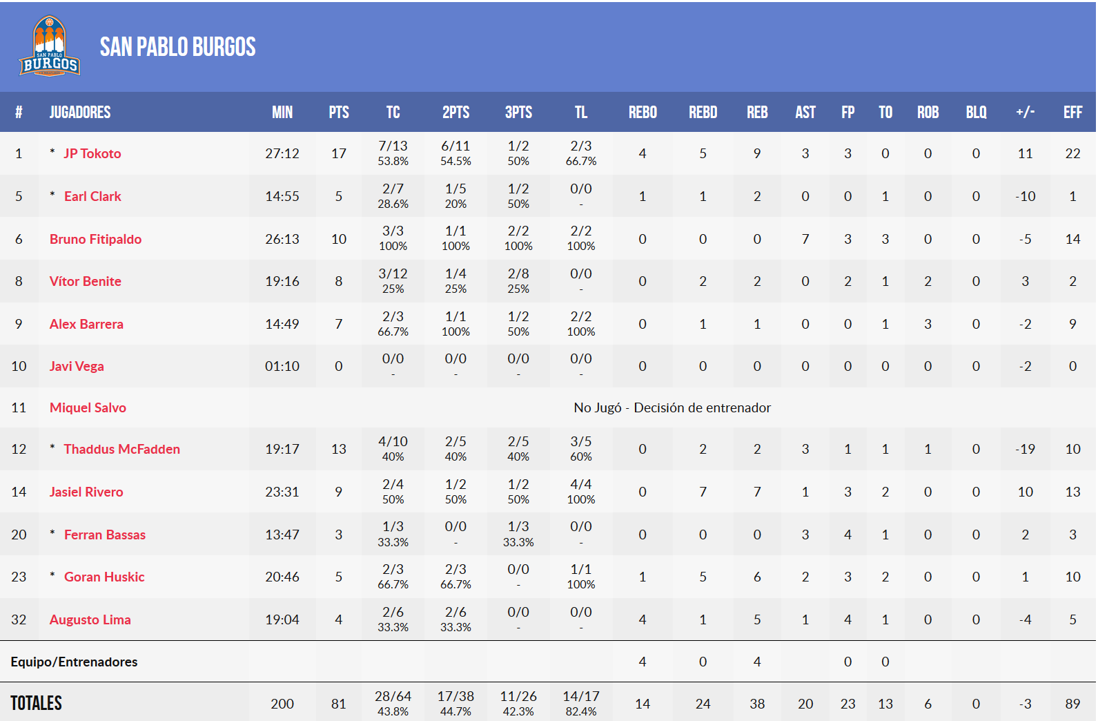 El acierto en el triple: Los turcos estuvieron muy inspirados desde el tiro de 3. Anotaron 12/23 (un 52,2%) sobre todo gracias a Smith, pero también a Omar Previtt (3/5). Si, además, el triple es el arma ofensiva más importante de los de Peñarroya ahora mismo, el duelo estaba servido. San Pablo Burgos no tuvo malos números (11/26, un 42%) pero no pudo acertar en los momentos finales.