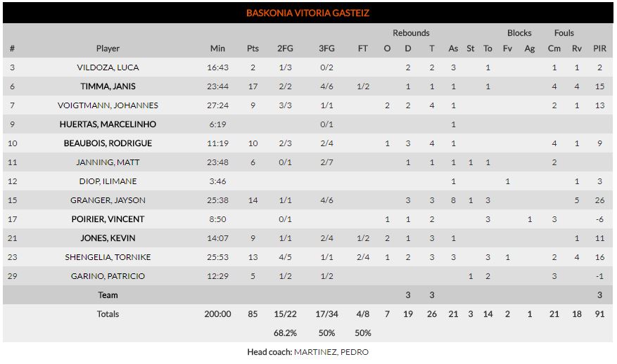 Janis Timma remata el encuentro: Con el encuentro igualado, Janis Timma ejerció de ejecutor perfecto para mantener las rentas, aunque mínimas, para los visitantes. Su acierto en el triple, y su valentía para encarar el aro dieron alas a los baskonistas. Suya, de hecho, fue la canasta ganadora.