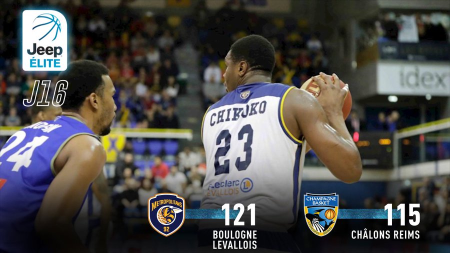 Châlons-Reims tuvo posibilidades reales de entrar en el Top 8, pero cedió en el tiempo extra en casa de Boulogne-Levallois, tras un espectacular partido que concluyó 121-115. Vitalis Chikoko guió a los Metropolitans a la victoria con una colosal actuación: 28 puntos, 7 rebotes, 3 asistencias y 35 de valoración. El zimbabuense estuvo bien secundado por el americano Jamel Artis (20 puntos).