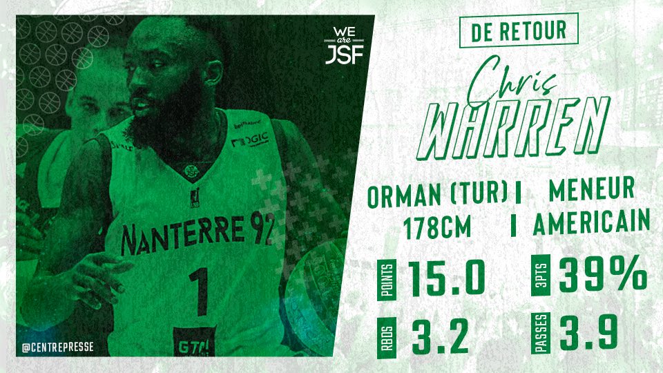 Dicen que no hay dos sin tres, y esta máxima se cumple en el caso del regreso de Chris Warren (1,78m, 31 años) a Nanterre, donde afrontará su tercera etapa tras ser un jugador fundamental en el título de liga conseguido en 2013 y el posterior doblete Copa de Campeones- Copa Europea de la FIBA en 2017.