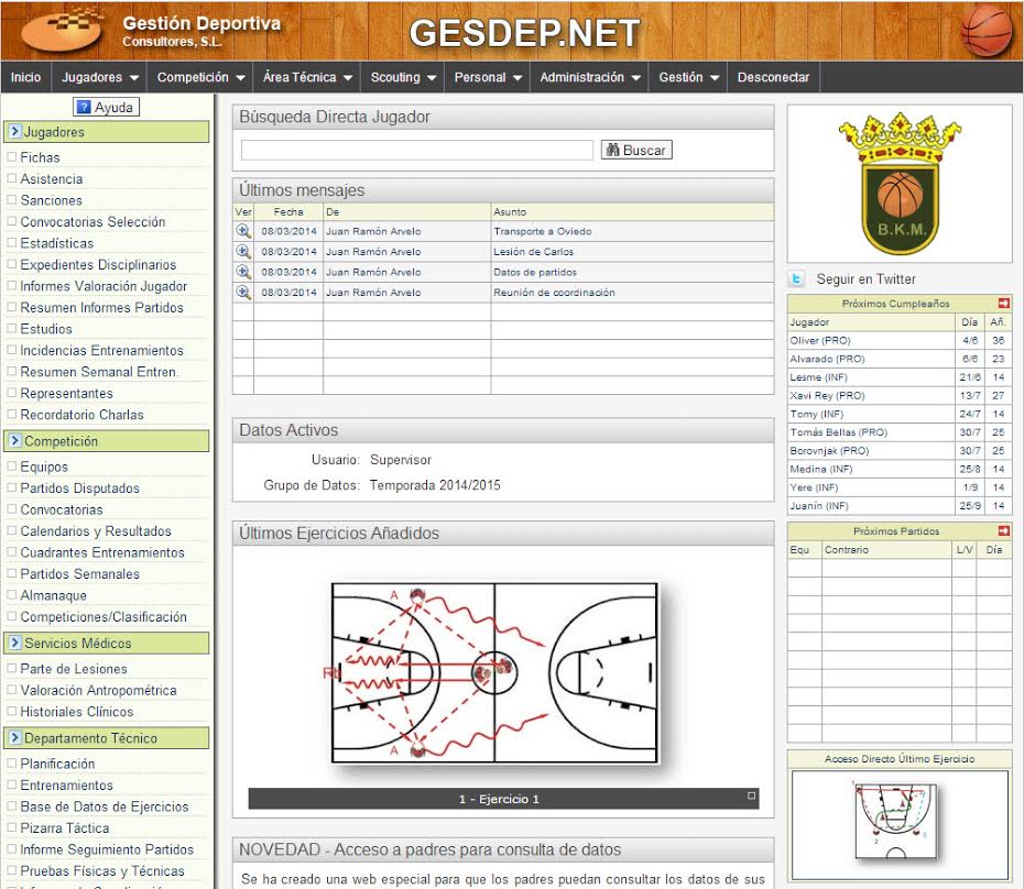 La ventaja de Gesdep.net es que da solución a todas las necesidades de un club de baloncesto, independientemente de su dimensión. Abarca la faceta deportiva con ejercicios, entrenamientos, bases de datos de jugadores, convocatorias, estadísticas, asistencia, competiciones, datos médicos, planificación, mensajería interna, un interesante módulo de jugadas en movimiento, etc, etc, etc….