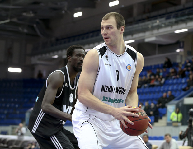 Fácil victoria del Nizhny Novgorod ante el VEF Riga, que no pudo contar con su estrella Janis Timma, que sonó para el Laboral Kutxa para suplir la baja de Bertans. Y lo echaron de menos los letones, muy erráticos en el tiro al inicio del partido, necesitando tres minutos y medio para anotar la primera canasta. El Nizhny no hacía prisioneros, e iniciaba con un 8-0 de parcial, volcando el juego en Parakhouski. El VEF Riga intentaría parar el juego del Nizhny, pero entonces aparecería Tarence Kinsey, con ocho puntos sin fallo en el primer cuarto, rematando el período Rochestie con un triple sobre la bocina para cerrar el cuarto en 28-17. Y la misma historia en el segundo cuarto, con el Nizhny muy cómodo sobre la pista y haciendo valer su juego en defensa, además de acierto exterior, que ampliaría la ventaja por encima de los veinte puntos al descanso. La segunda parte, seguiría el mismo guión, con el Nizhny aumentando su ventaja paulatinamente, apoyados en Rochestie, Thompkins y Parakhouski, el trío habitual, y llegando hasta los 33 puntos de diferencia, dejando el último período como un mero trámite, que sirvió a Bagatskis para rotar y acabando el encuentro en un abultado 102-72. Parakhouski y Rochestie fueron los mejores del Nizhny, con 20 y 21 puntos respectivamente.