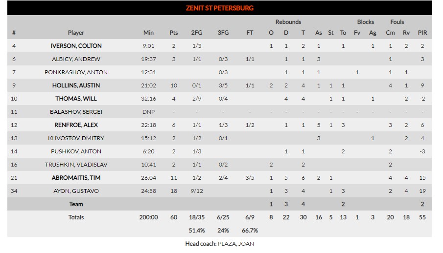 Se enfrentaban en el Buesa Arena Kirolbet Baskonia y Zenit de San Petersburgo en el partido correspondiente a la jornada 10 de la Euroleague. Por bando local las dudas seguían presentes a pesar de la meritoria victoria conseguida ante CSKA Moscú el miércoles. La escuadra visitante llegaba al encuentro como colista y con la baja de Ponitka, uno de sus mayores recursos ofensivos. Muchas caras conocidas en los rusos, empezando por el técnico Joan Plaza y siguiendo por los Ayón, Abromaitis, Albicy, Renfroe, Will Thomas y un ex baskonista como Colton Iverson.