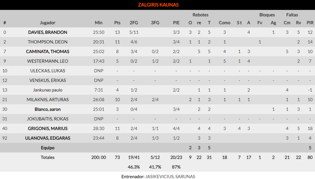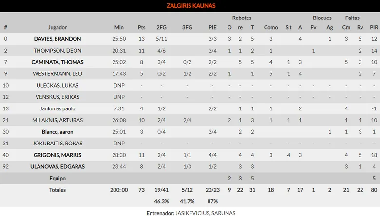 Las pérdidas y los contraataques: 17 cosecharon los lituanos, muchas de ellas fueron continuas, lo que permitió al Baskonia correr en bastantes ocasiones, algo que no desaprovechó.