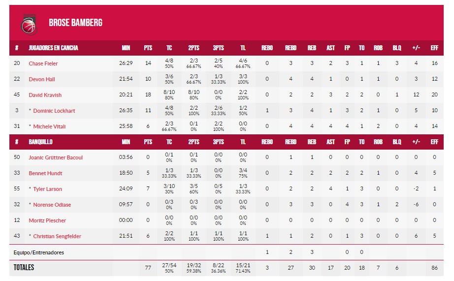 Partido eficaz del pívot americano. Tan solo 20 minutos en pista fueron suficientes para anotar 18 puntos con 8/10 en tiros de campo, 2 rebotes y 3 asistencias para 20 de valoración. Bonito duelo el que tuvo bajo los aros con Balvin, siendo el principal arma ofensiva de ambos equipos.