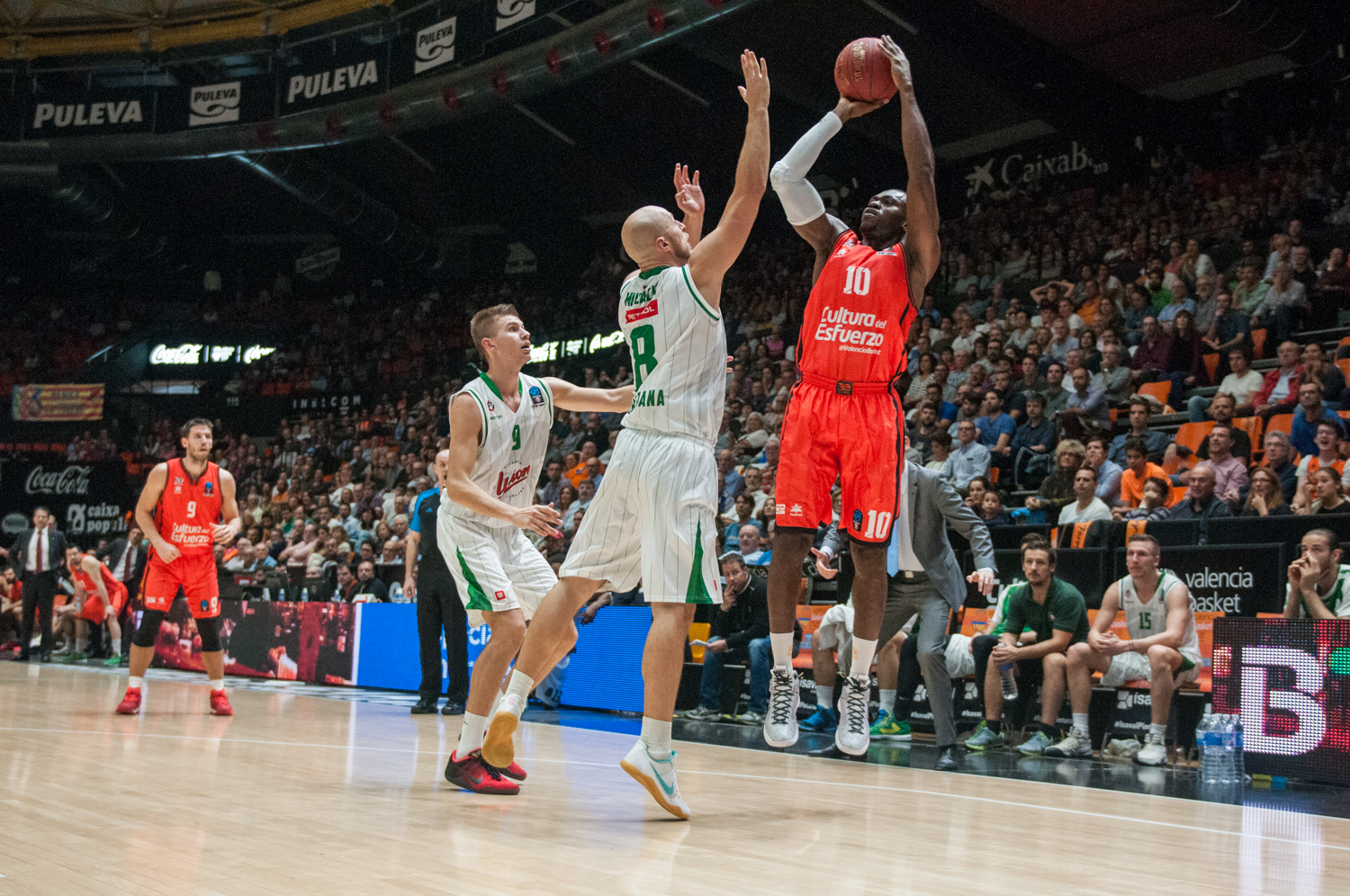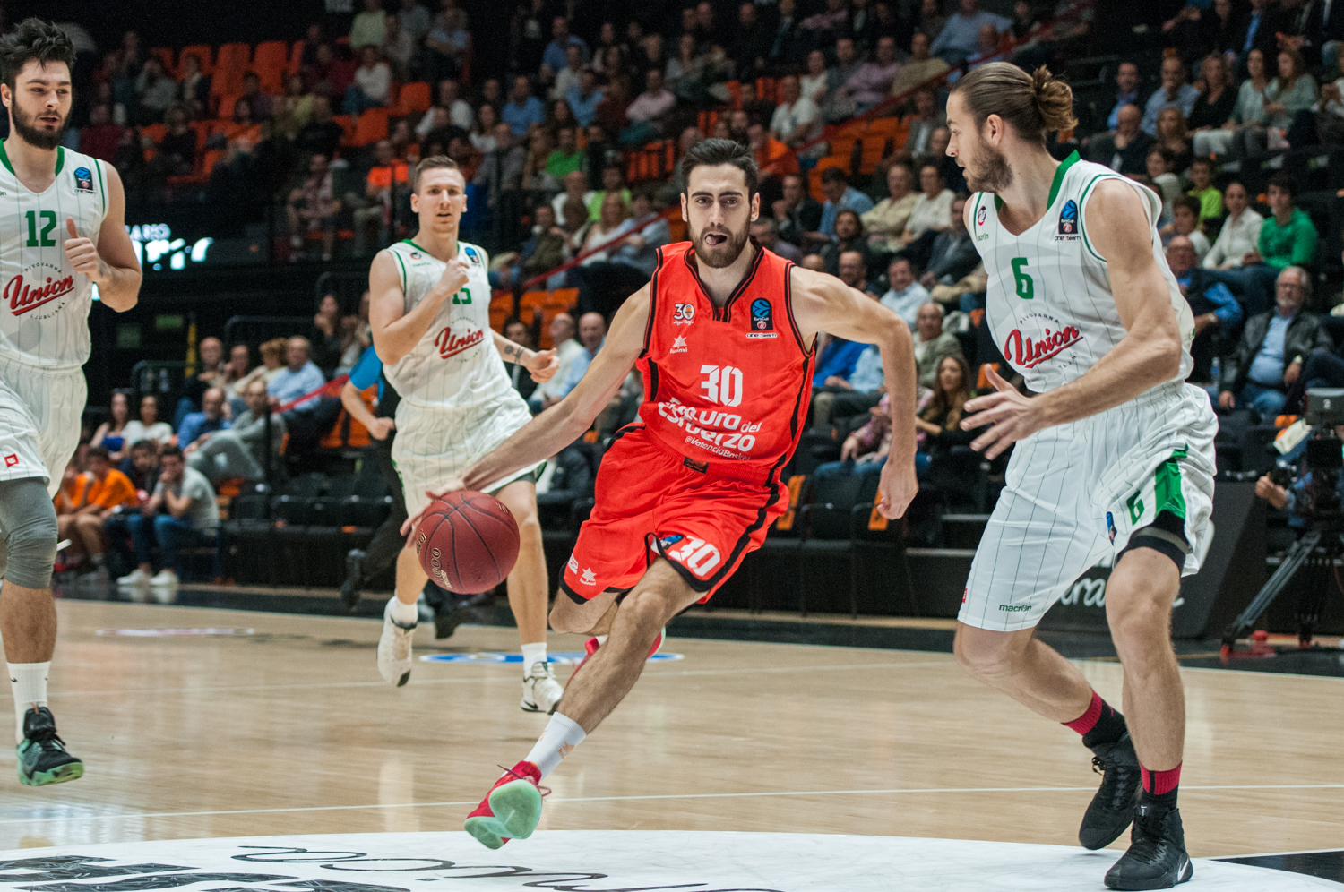Tras el tropiezo hace dos semanas frente al Hapoel Jerusalem, el equipo entrenado por Pedro Martínez debía ganar sí o sí al Olimpija Ljubljana teniendo en cuenta que las cuatro próximas jornadas de Eurocup las deberán disputar a domicilio. Con esta premisa los taronja salieron directos a comerse al rival y los eslovenos no supieron resistir el envite taronja. Con un parcial de inicio 10-1, el Valencia Basket puso tierra de por medio y no soltó el acelerador en todo el primer cuarto. Joan Sastre fue el más destacado con 9 puntos junto a Bojan Dubljevic que una vez más aprovechó su superioridad frente a un juego interior esloveno más débil. La superioridad local permitió a Pedro Martínez rotar la plantilla en el primer cuarto en el que jugaron todos a excepción de Oriola y Vives. Gregor Hrovat fue el único que tiró de orgullo en los eslovenos que maquillaron el cuarto dejando la diferencia en 8 puntos 24-16.