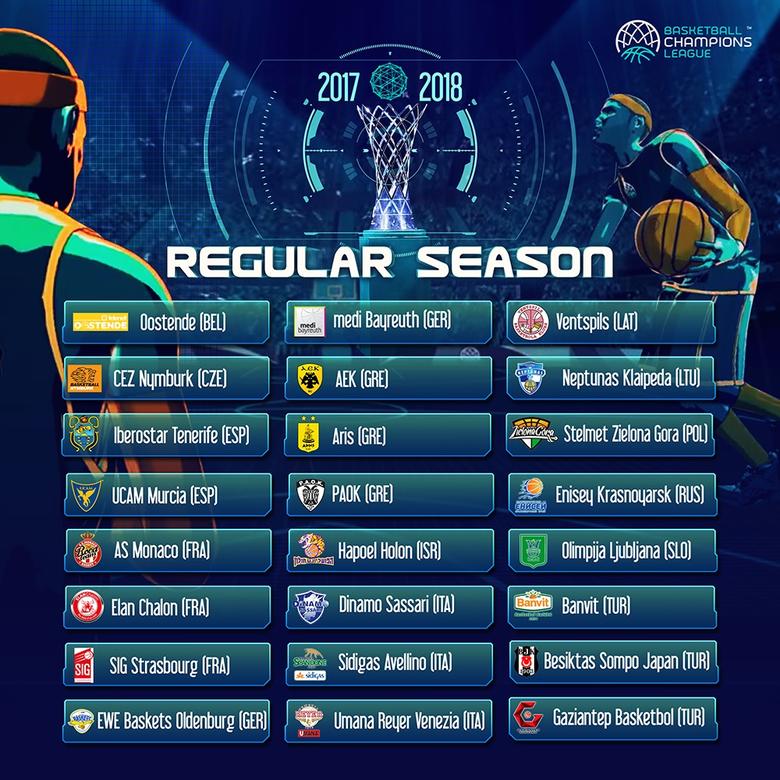 AEK (GRE), Aris (GRE), AS Monaco Basket (FRA), Banvit (TUR), Besiktas Sompo Japan (TUR), ČEZ Basketball Nymburk (CZE), Dinamo Sassari (ITA), Elan Chalon (FRA), Enisey Krasnoyarsk (RUS), EWE Baskets Oldenburg (GER), Gaziantep (TUR), Hapoel Holon (ISR), Iberostar Tenerife (ESP), medi Bayreuth (GER), Neptunas Klaipeda (LTU), Olimpija Ljubljana (SLO), PAOK (GRE), Sidigas Avellino (ITA), SIG Strasbourg (FRA), Stelmet Zielona Gora (POL), Telenet Oostende (BEL), Umana Reyer Venezia (ITA), Ventspils (LAT), UCAM Murcia (ESP)