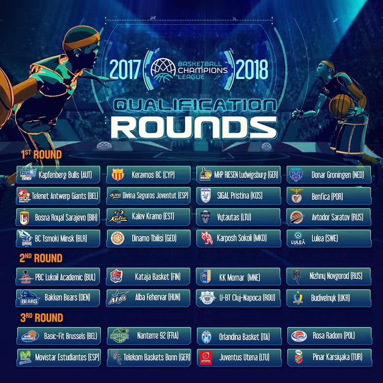 Los ocho equipos clasificados se enfrentarán a los 8 directamente clasificados para la segunda fase y que son: Alba Fehervar (HUN), Bakken Bears (DEN), Budivelnyk (UKR), Kataja Basket (FIN), Mornar Bar (MNE), Nizhny Novgorod (RUS), PBC Lukoil Academic (BUL), U-BT Cluj Napoca (ROM).