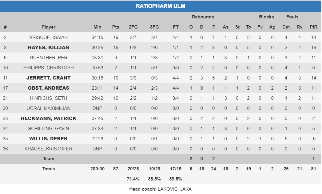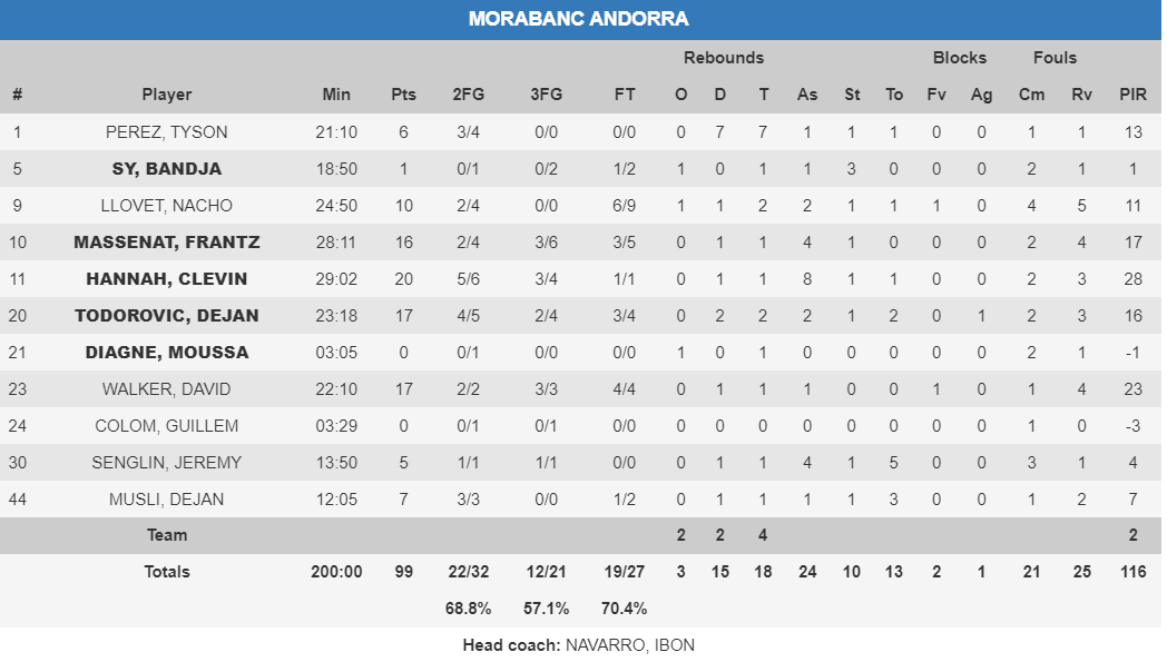 Policías y ladrones: La defensa de Morabanc Andorra sería un muro en el primer cuarto. Completamente inexpugnable y con Bandja Sy robando 4 balones en 6 minutos, los locales se desesperaron con muchas pérdidas. Los 9 robos al descanso fueron un mal presagio de lo que pasaría en la segunda parte, donde solo robaron uno. Al final, los andorranos se llevan una victoria de Ulm después de haberse llevado más de un balón en el primer cuarto.