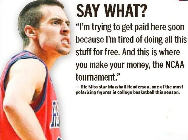 Él reconoce que sólo actua así para pasárselo bien, para divertirse porque el baloncesto es un juego, pero sin embargo el destino le jugó una mala pasada y en la tercera ronda del Gran Baile fueron apeados de la lucha por el título nacional de manera muy dolorosa, con un triple sobre la bocina anotado por la Universidad de La Salle. Esto ocurrió el 24 de Marzo en Kansas City, ciudad que albergaba esas rondas, y la frustración una vez más llevó a Henderson a despedirse así de los aficionados que le abucheaban desde las gradas, tras primero darle una patada a los botes de bebida: