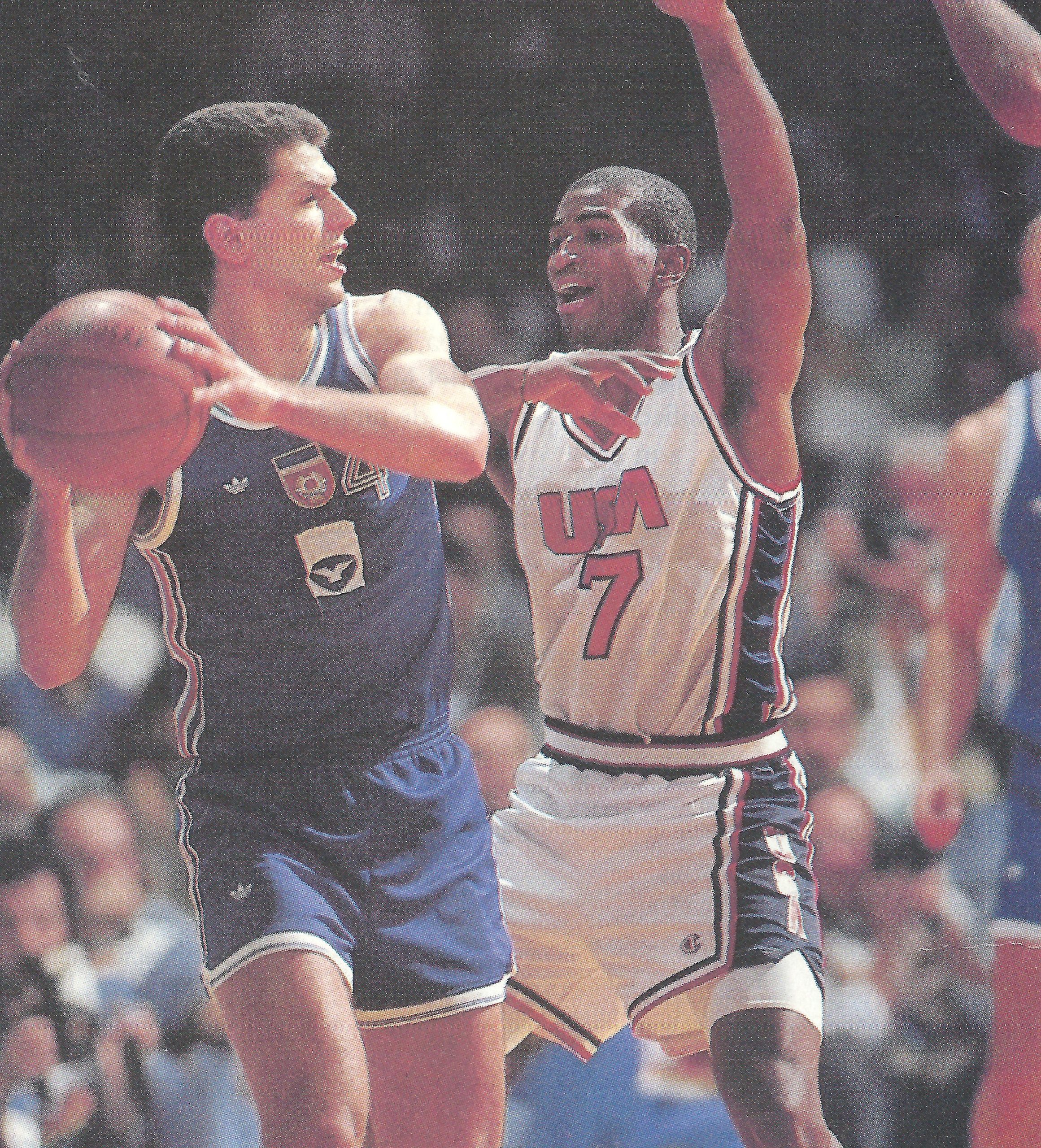 En la otra semifinal, Yugoslavia se presentó sin ningún complejo ante Estados Unidos, hasta entonces dominadores del baloncesto mundial sin necesidad de contar con jugadores de la NBA. Normalmente se presentaba a los Juegos Olímpicos y a los Campeonatos del Mundo con una selección de jugadores universitarios que, sobre todo en los Juegos, no tenían problemas para imponerse a las selecciones del resto del mundo. Pero las cosas estaban cambiando y estos yugoslavos ya habían pasado por encima de una selección estadounidense, concretamente los de la generación del 67 y el 68 (Radja, Kukoc, Divac y Djordjevic), que se habían impuesto en el Mundial junior de 1987 en Bormio, en la famosa noche mágica de los 11 triples de Kukoc.