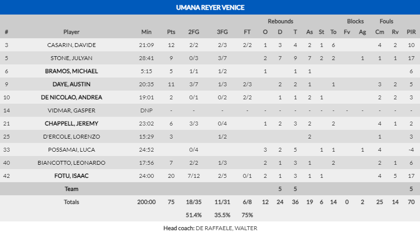 Ante Tomic es una bendición para el Joventut. El croata es el gran líder de los verdinegros y lo demuestra cada vez que salta sobre el parqué. Un jugador diferente, con un repertorio técnico inacabable y una capacidad única de leer aquello que los demás no pueden. Un auténtico maestro. Y sino que se lo digan a los jugadores del conjunto italiano, que sufrieron cada una de sus acciones. Tomic es de aquellos que sacan petróleo de donde no lo hay, el baloncesto parece fácil cuando el balón llega a sus manos. Acabó el encuentro con 15 puntos, 3 rebotes, 4 asistencias y 7 faltas recibidas para 26 de valoración -y con tan solo 19 minutos-. Toda una clase magistral.