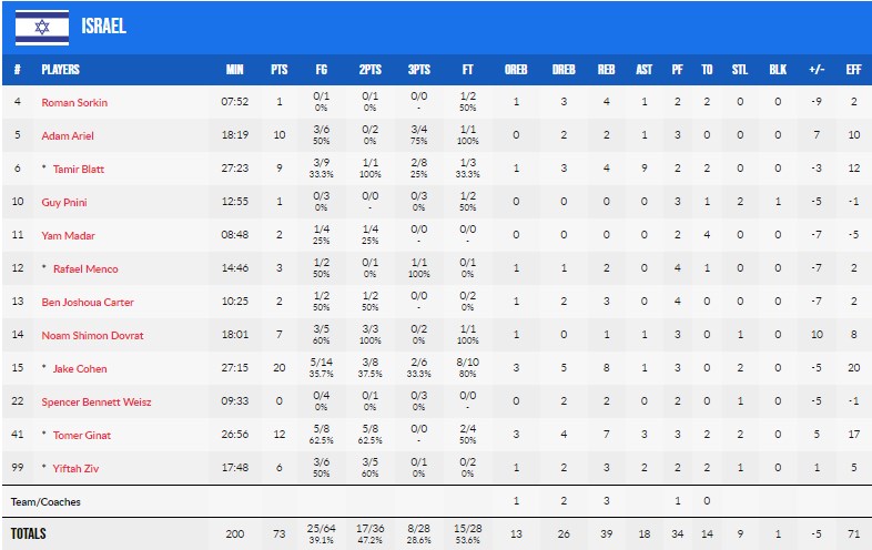 Los de Scariolo mandaron con cierta comodidad en la primera parte (42-31), a pesar de tener problemas de faltas en sus pívots y tener que jugar unos cuantos minutos con Barreiro y Parra de pareja interior. Pero los de Kattash iniciaron la segunda parte con un tres de tres en triples que apretó el marcador, para luego sumar un 3+1 para ponerse a un punto. Esta remontada fue clave para los israelís estuvieran siempre en el partido y con opciones hasta el final, liderados por un gran Jake Cohen. El jugador de Monbus Obradoiro fue el mejor de los suyos con 20 puntos, 8 rebotes y 20 de valoración