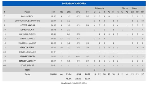 En líneas generales el partido de Morabanc Andorra no fue bueno, y es que estuvieron lejos de su mejor versión de juego. Sin embargo, en un encuentro gris hay que destacar a Tomasz Gielo. El ala-pívot polaco llegó hace unas horas a Andorra para refozar por un mes el juego interior ante la plaga de lesiones, que golpeó de lleno al club andorrano. De la mano del ex del Joventut y de Iberostar Tenerife, Morabanc Andorra tuvo una vía de escape para acercarse en el marcador, sobre todo en el tercer cuarto, pero la distancia en el marcador ya era difícil de reducir. Aun así, destacar su actuación, finalizando el encuentro con 12 puntos, 4 rebotes y +9 créditos de valoración.