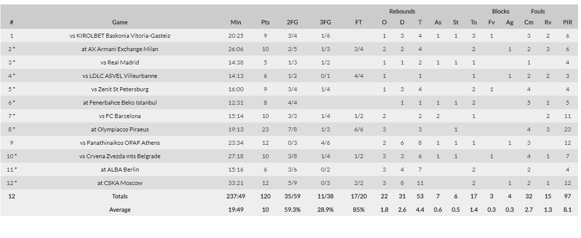 Sin embargo ha conseguido unos números de 11 puntos y 6 rebotes en una competición mucho más exigente de lo que él estaba acostumbrado como es la euroliga.
