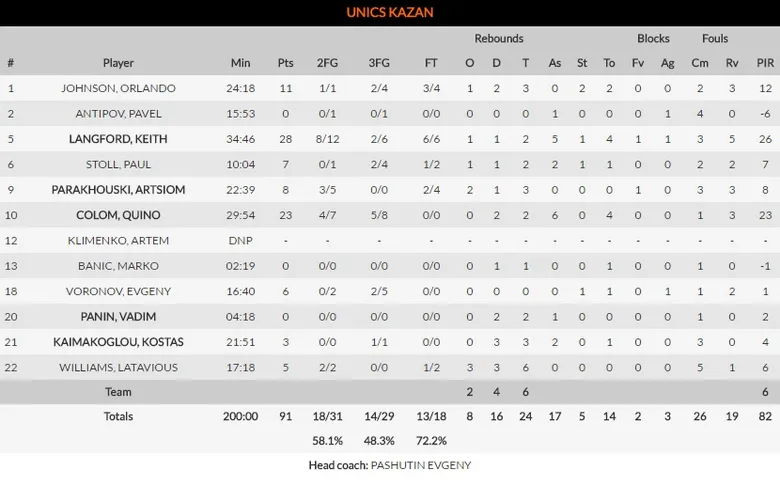 Al final, nueva victoria del conjunto baskonista, que se coloca con un balance de 8-4 en la clasificación, y como cuarto a la espera de lo que hagan Fenerbahçe y Olympiacos. Las sensaciones son buenas y los resultados mejores. Unics, que ya estaba en una racha negativa, obtiene buenas sensaciones, pero no sumar en su casillero de partidos ganados. Todo ello a pesar de los partidazos de Quino Colom (23 puntos y 6 asistencias) y Keith Langford (28 puntos y 5 asistencias), cuyos compañeros no hicieron lo suficiente para parar a Larkin (22 puntos y 6 asistencias: 26 de valoración) y Shegelia (19 puntos y 24 de valoración).