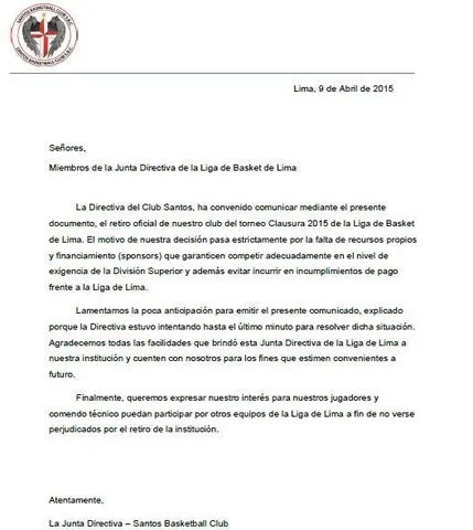 Por otro lado, ha ocurrido un hecho lamentable en la Liga de Lima. El equipo Santos decidió retirarse de la máxima categoría por tener problemas con algunos patrocinadores y no poder contar con un presupuesto que le permita traer refuerzos extranjeros y ser competitivos durante la temporada. Por este motivo sólo se jugará este año con 8 equipos y aún no se decide en cómo cambiará el formato del campeonato respecto a playoffs y descenso.