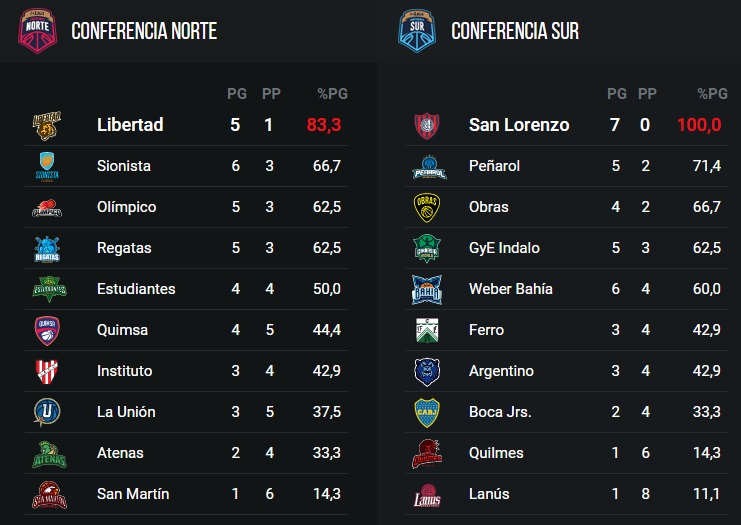 La Liga Argentina sigue su rumbo en una semana más de competición con diferentes tendencias en ambas zonas de competición. En la Zona Norte, el que marca el paso es Libertad de Sunchales con un record de cinco victorias y una derrota y reponiéndose de la paliza recibida por sus tres extranjeros en un bar hace una semana, mientras que el equipo que está decepcionando y marcha último es San Martín de Corrientes, quién luego de clasificar a la semifinal de la Liga Sudamericana no ha podido ganar y suma seis derrotas al hilo.