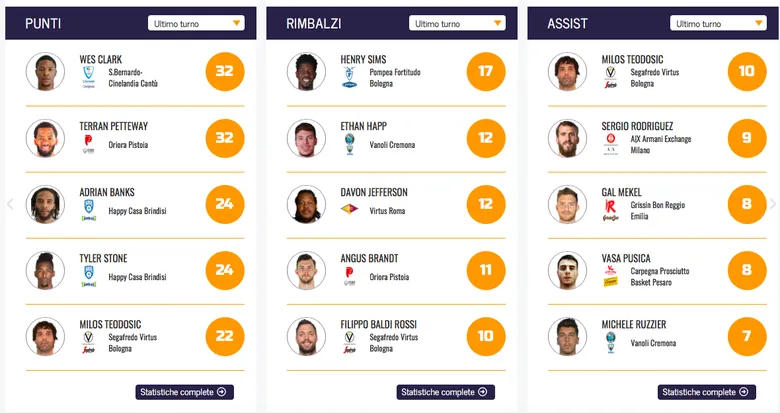 – Wes Clark: El playmaker del Cantú de 24 años ya avisó la temporada pasada en Brindisi que puede ser uno de los grandes nombres de esta Lega. El joven base americano ya hacía las delicias en la NCAA con Buffalo y es una de las grandes apuestas del Cantú. Su impecable actuación frente al Trieste, 32 puntos, 5/6 en tiros de tres, 2 rebotes, 4 asistencias y 34 de valoración, han hecho que sea el MVP de la jornada. Apuntar su nombre y ver su talento: