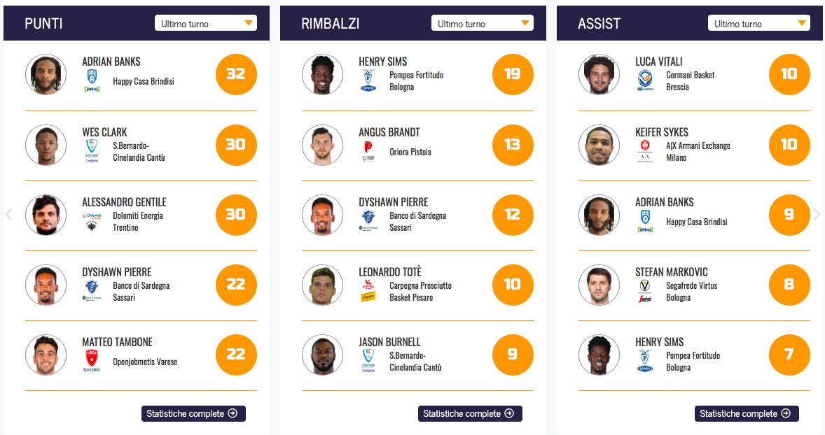 Apretadísimo fue el duelo entre Cantú y Happy Casa Brindisi, que se llevaron los visitantes, 92-93. Sin duda uno de los partidos de la jornada. Imparable Banks con 32 puntos y 9 asistencias, y tarea de pico y pala de Stone con 19 puntos, 5 rebotes y 3 asistencias. Por parte del Cantú, destacable el encuentro de Clark con 30 puntos y 8 rebotes. Los que están empezando a hilar jugadores y ha enganchar con su juego es el Reyer Venezia. De nuevo victoria colectiva, esta vez frente a Trieste, 72-81, con varios jugadores por encima de la decana de puntos: Watt, Tonut, Bramos..