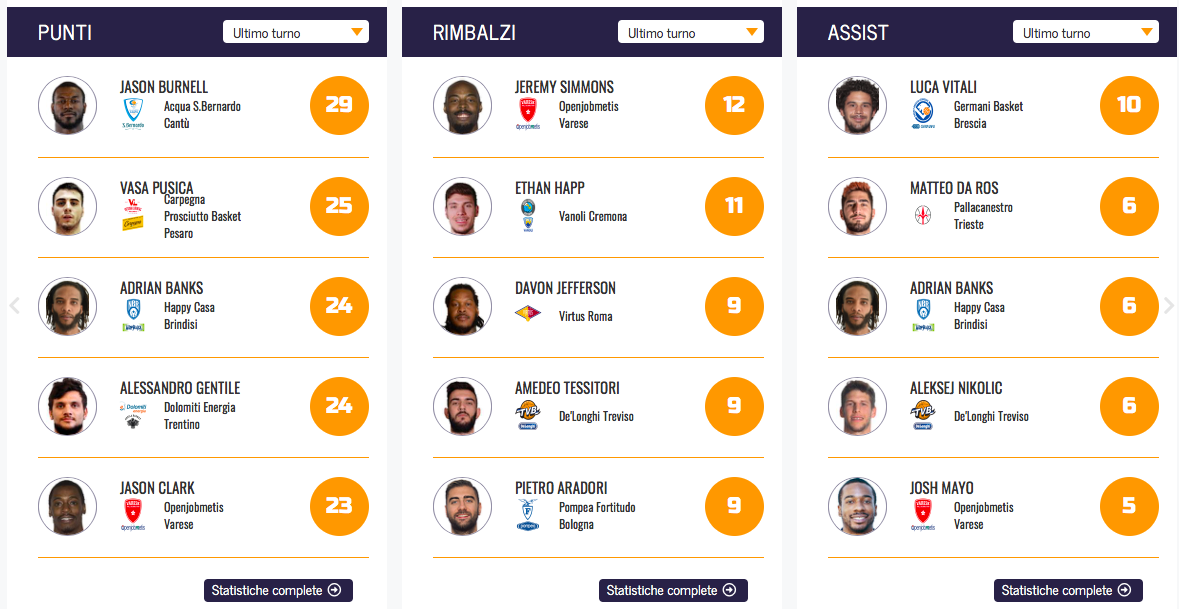 – Adrian Banks: El jugador americano vuelve a ser el MVP de la jornada tras serlo en la 3º jornada. Con más de 2.500 puntos en la Lega Serie A, es ya uno de los nombres propios de la liga italiana y la estrella sin duda de este Happy Casa Brindisi. Este domingo fundamental sus 24 puntos, 6 rebotes, 6 asistencias y 33 de valoración. Si no le conocéis ya estáis apuntaod el nombre porque esta temporada volverá a estar en los titulares. Aquí sus mejores jugadas de esta jornada: