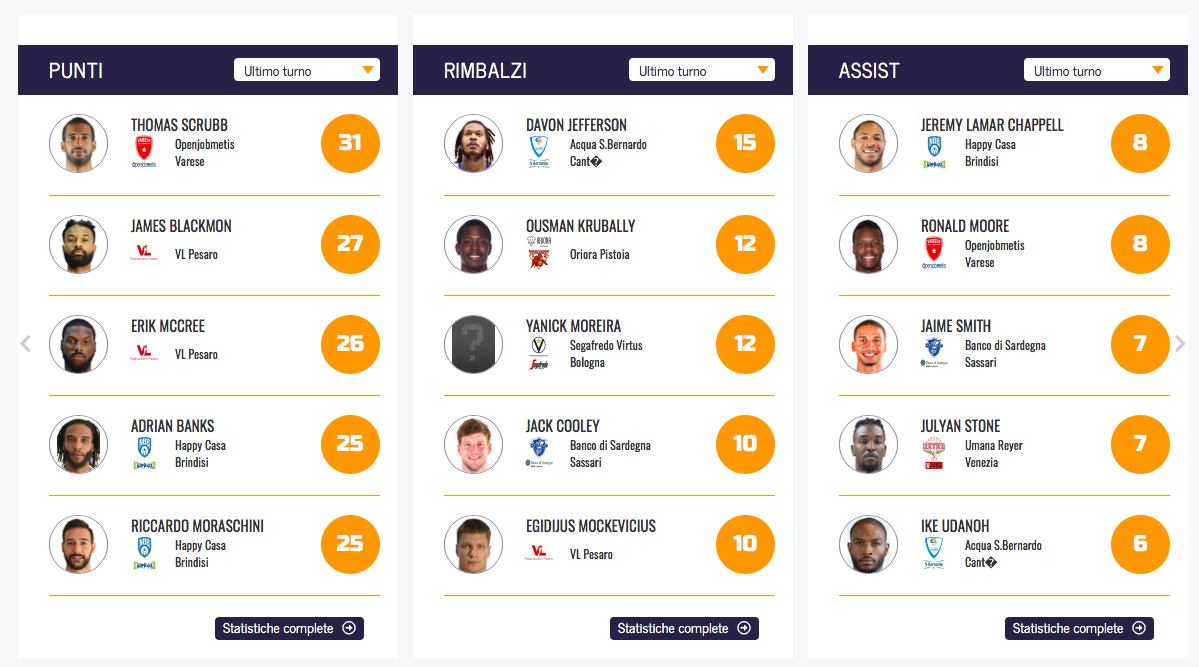 – Adrian Banks: El jugador americano del Happy Casa Brindisi fue una de la claves para entender la victoria frente al Armani de Milan. El base, que no fue drafteado en 2008, debutó como profesional en la Bélgica. Después probó suerte en Israel, donde ha vuelto en varias ocasiones, pero ha sido en la Lega donde realmente ha realizado su impacto como un gran anotador. Ha jugado en las filas de Varese y Avellino, pero ahora se encuentra en Happy Casa Brindisi, donde tienen en la mente jugar los playoffs. Un jugador con experiencia, con puntos en sus manos y con capacidad para ser parte fundamental de un partido como este domingo frente a Milan con 25 puntos, 5 rebotes, 4 asistencias y 30 de valoración.