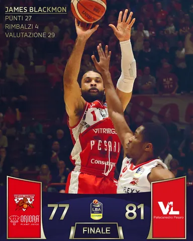 Y Oriora Pistola sigue a la cola de la clasificación, no consiguió en esta ocasión tampoco salir del bache en casa frente a un Pesaro que se impuso (77-81) con las grandes actuaciones de Blackmon, 27 puntos, y Mccree 24 puntos.