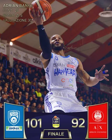 En la Lega todo es posible, una liga abierta y dinámica. Como que el Happy Casa Brindisi pueda ganar al “blindado” Milan. El eterno favorito cayó luchando (101-92), pero el Brindisi firmó un partido casi perfecto ofensivamente, con el estadio lleno y con tres malas bestias como Banks con 25 puntos, Moraschini con 25 puntos, y Brown con 21 puntos. James y Jerrells intentaron revertir la situación en vano.