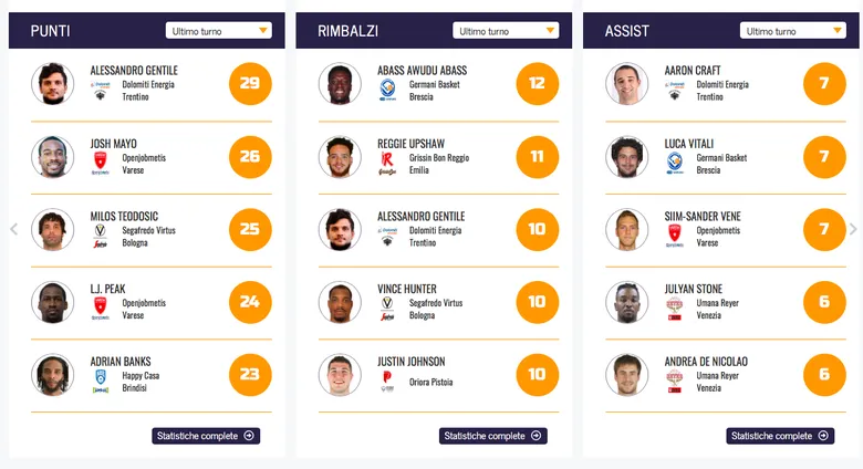 Los que siguen sin poder sumar una victoria son Pesaro y Oriora Pistoia. Pesaro cayó ante Reggio Emilia 90-65, con Upshaw 20 puntos y 11 rebotes y Vojvoda con 20 puntos. En su caso, Oriora Pistoia perdió ante Fortitudo Bologna, 82-71, que contó con un gran Sims con 18 puntos, 5 rebotes y 3 asistencias.