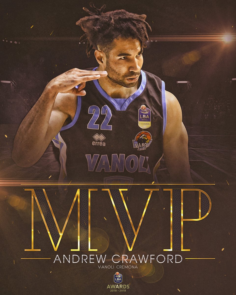 – Andrew Crawford: Elegido como MVP de la LBA. A sus 28 años el jugador americano ha encontrado en Cremona el sitio perfecto para sacar a relucir todo su talento. Es una de las piezas fundamentales para entender esta temporada histórica del Cremona. Primera Copa de Italia del club y segundos clasificados de la Lega. Crawford ha promediado 17,4 puntos y 4 rebotes por partido, y ha estado muchas jornadas entre los más destacados de la liga. Merecidísimo premio a un jugador al que habrá que seguirle muy de cerca en los Playoffs.