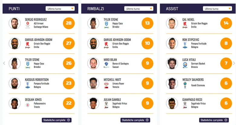 – Darius Johnson-Odom: Este jugador de Carolina del Norte de 30 años ha llegado a jugar en 14 equipos. Base con experiencia tanto en equipos de NBA como en la Lega donde ha llegado a estar en las filas de Cantú, Sassari, Vanoli y actulmente en Reggio Emilia. Esta jornada firmó un partido brillante, 27 puntos, 10 rebotes y 25 de valoración. Sin duda va a ser una de las claves de que este año el Reggio Emilia pueda respirar e incluso mirar la parte media de la tabla.