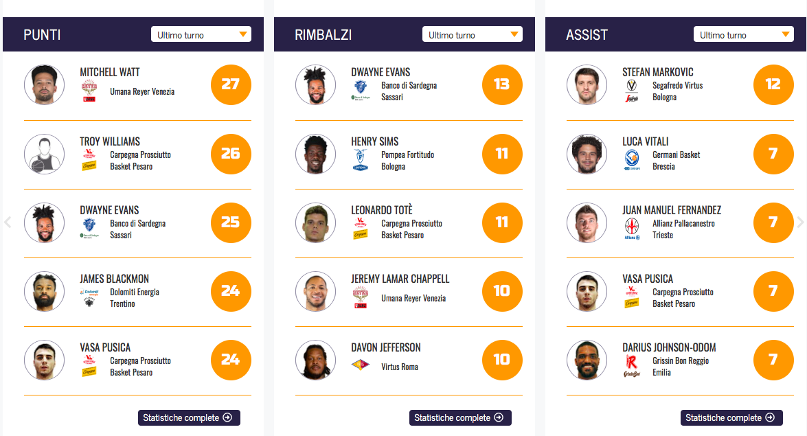 – Dwayne Evans: El ala-pívot americano es su primer año en la liga italiana y está haciéndose notar. A sus 27 años ha llegado al Dinamo Basket Sassari tras sus cuatro temporadas de experiencia en Alemanía. Además, jugó durante cuatro temporadas con los Saint Louis Billikens y tras no ser drafteado en 2015 en cuando comenzo su carrera profesional en Europa. Un jugador con gran poderío físico y buena técnica. Esta jornada, 25 puntos, 13 rebotes, 4 asistencias y 40 de valoración. Seguiremos hablando de él, seguro.