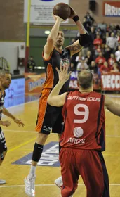 Paso atrás de la Scavolini, que cayó en el Adriatic Arena ante una de las sensaciones, la Trenkwalder Reggio Emilia. Derrota más amarga si, además, los tres competidores más directos como Biella, Sutor y Avellino, consiguieron ganar sus respectivos partidos. Un 0-6 de la Reggiana en los últimos instantes les permitió dar la vuelta al marcador, rematando en el carrusel de tiros libres final. Lamont Mack -no era el más apropiado- falló el triple que hubiera forzado la prórroga. Barbour y Stipcevic, con 22 y 23 puntos, respectivamente, llevaron el peso anotador de los de Markovski ante el flojo partido de Kinsey (9 puntos). Donell Taylor recuperó el nivel anterior a la Coppa y acabó con 20 puntos, bien ayudado por un Andrea Cinciarini mayúsculo en esta temporada…que bien le vendría a su ex Cantù.
