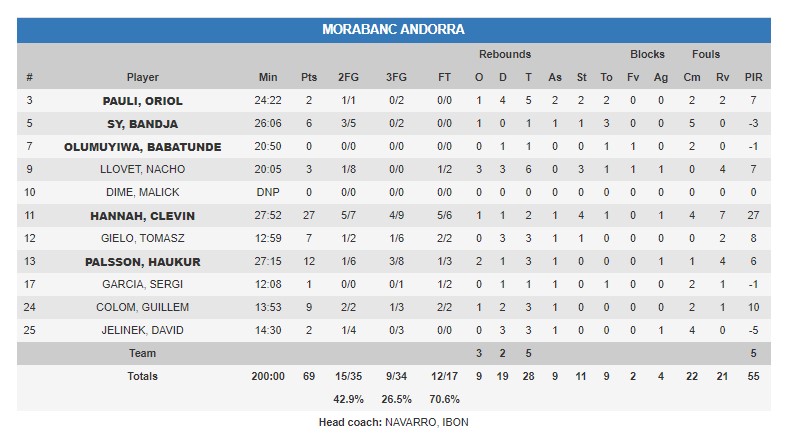Ibón Navarro es uno de los entrenadores más ingenuos de la Liga Endesa, y a pesar de las bajas siempre encuentra una solución para dar con un equipo que pueda hacer peligrar a su rival. Hoy, con la lesión de Jeremy Senglin, fue el turno de Guillem Colom, capitán del Morabanc Andorra que cada fin de semana cuenta con pocos minutos o ya, directamente, ninguno. En la tarde de hoy, el escolta de los visitantes dinamitó a los suyos saliendo desde el banquillo, aportando energía y acierto. En el encuentro de hoy jugó un total de 14 minutos, que le sirvieron para acabar con unas estadísticas de 9 puntos, 3 rebotes y 1 asistencia, demostrando que con minutos puede ser un jugador aprovechable más allá de lo que significa para el propio club.