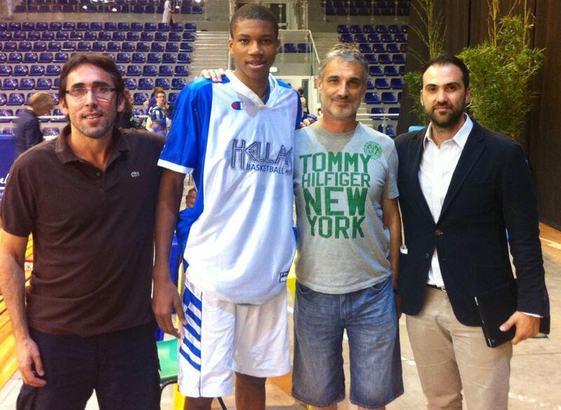 - ¿Cincuenta scouters de la NBA se acercaron a ver a Giannis Adekotunbo con la selección Griega U20? Se podría decir que los ojeadores de las franquícias estadounidenses han perdido la cabeza por éste ala-pívot nigeriano con pasaporte heleno. Pero aprovechando el Adidas Eurocamp celebrado en Treviso, la mayoría decidió recorrer 45 minutos de viaje para presenciar el torneo U20 donde participaban los combinados de Turquia, Croacia, Italia y Grecia. Con la presencia del citado jugador. Los griegos ganaron a Croacia, con una buena actuación de Giannis con 17 de valoración. Ante los turcos se destapó y acabó con 17 puntos, pero cayeron claramente ante Savas, Karaman y Balbay (93-82). Ante Italia también cayeron. Todos tomaron notas de las evulociones del menor de los Adekotunbo, unos más satisfechos que otros. Que comparan al nacionalizado como un proyecto inicial parecido a Kevin Durant. Además, el jugador tuvo una visita muy especial procedente de España. El técnico del CAI Zaragoza Jose Luís Abós y el secretario técnico maño Willy Villar quisieron estar con el jugador en un momento tan importante para él. Una imagen vale más que mil palabras.