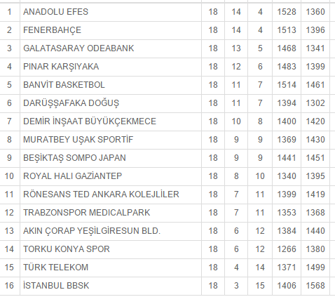 Por último, el Yesilgiresun pone tierra de por medio con respecto a las posiciones de descenso con su victoria por 90-87 ante el TED Ankara, en un choque que tuvo que dirimir su ganador en la prórroga. Darnell Jackson (21 puntos y 5 rebotes) y Martynas Gecevicius (22 puntos) fueron los anotadores más destacados por cada bando.