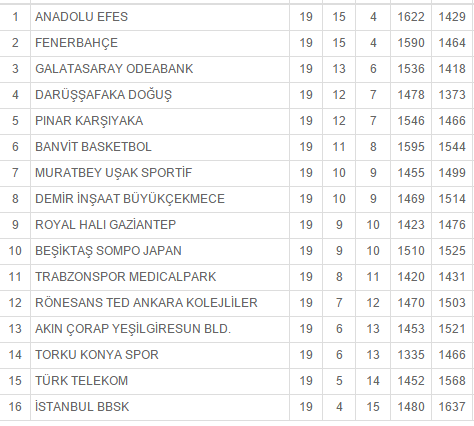 El colista Istanbul BB logró, por fin, ganar, a costa de un Besiktas al que dejó en 8 puntos en el último periodo (74-69). Jaka Klobucar (14 puntos y 7 rebotes) fue el mejor en los locales, mientras que en Besiktas llevaron el peso del juego el dueto interior con pasado ACB formado por Lamont Hamilton (18 puntos y 7 rebotes) y Maciej Lampe (13 puntos y 14 rebotes).