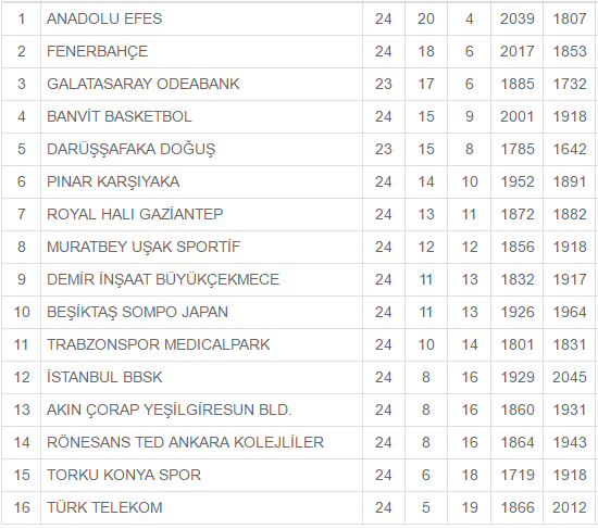 El Istanbul BB logró su tercera victoria en las cuatro últimas jornadas para lograr lo que parecía imposible hace unas semanas, salir de los puestos de descenso. Esta jornada superó al Royal Hall Gaziantep por 81-77 en un buen partido del ex de Bilbao Basket Damir Markota (14 puntos y 8 rebotes).