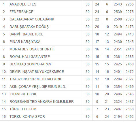 - Istanbul BB – Galatasaray 67-79