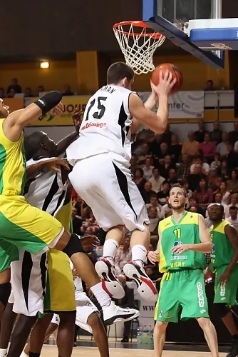 El partido más destacado de esta quinta jornada en la liga francesa fue el que disputaron el sábado el vigente campeón, Cholet, y el poderoso Asvel lyonés. Fue un partido espectacular y ciertamente extraño, no sólo porque comenzara con una hora de retraso con respecto al horario previsto por la existencia de goteras en el pabellón choletais. El equipo visitante comenzó con gran intensidad y se iba al descanso con 10 puntos de ventaja (33-43), gracias al fantástico partido del ex-jugador manresano Matt Walsh, autor de 21 puntos hasta ese momento. Pero un descomunal parcial de 26-2, favorable a los locales, daba la vuelta al partido y provocaba que los fantasmas mentales volvieran a aparecer entre los jugadores del seleccionador Vincent Collet. Buena parte de la culpa la tuvo que Erman Kunter, técnico de Cholet, situara a DeMarcus Nelson encima de Matt Walsh. Pese a que Kunter se quejara amargamente en la rueda de prensa posterior al partido de que habían disputado dos encuentros sin apenas descanso (jueves por la noche, Euroliga, con victoria ante el Lietuvos Rytas, y sábado frente a Asvel), sus jugadores supieron jugar en equipo (hasta cuatro jugadores con 17 de valoración o más) e imponerse a un rival en el que estuvieron muy solos Matt Walsh y Davon Jefferson (ambos en el quinteto de la semana)