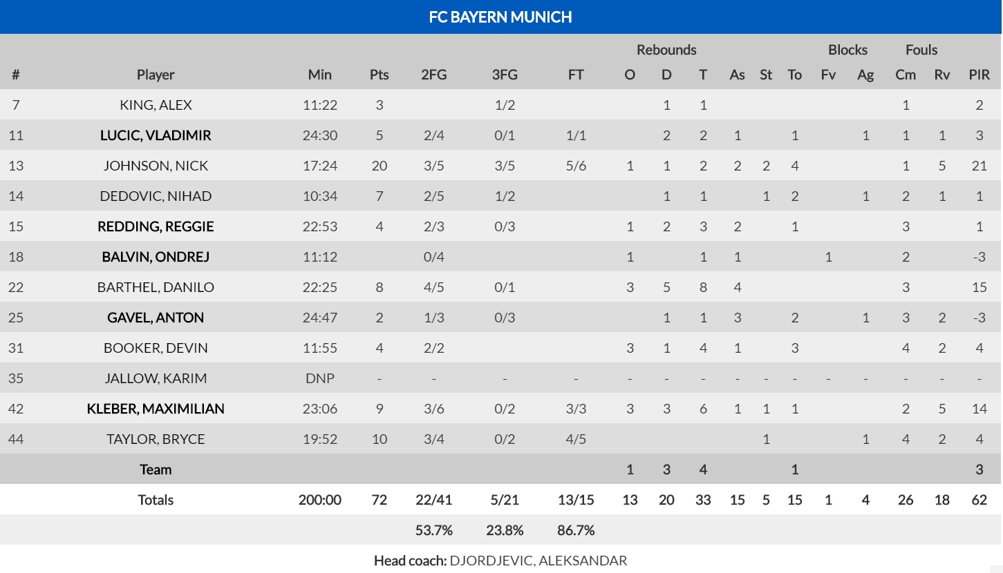 3. CARA Y CRUZ. Un parcial de 9-0 del Bayern en el tercer cuarto hacía que la ventaja local se disparara hasta los diez puntos (50-41), pero Unicaja no estaba dispuesto a rendirse, y un parcial de 1-16 entre el final del tercer cuarto y el inicio del último, cambiaba el escenario por completo. Pero fue en los últimos instantes cuando Unicaja no supo rematar el encuentro. Ganaba por cinco puntos (62-67) a poco menos de tres minutos para el final, pero una serie de errores y malas decisiones en ataque provocaron que Unicaja no volviese a anotar en juego. Sólo logró 2 puntos en ese tiempo, producto de dos tiros libres de Alberto Díaz. Al final, el banquillo de Unicaja protestó una posible falta sobre Kyle Fogg, pero ese supuesto error arbitral no justifica el apagón ofensivo de los últimos minutos.
